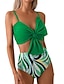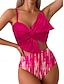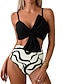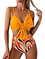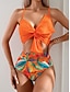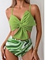 Dame Badetøy Bikini 2 stk Høy Midje Badedrakt Rynket Ferie Strand Klær Grafisk V-hals Ermeløs Badedrakter