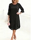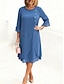 Dame Midikjole Chiffonkjoler Cocktail Kjole Elegant Mote utendørs Feriereise Ut på byen Løstsittende عادي Langermet Crew-hals Blå Svart Sommer Vår