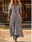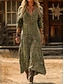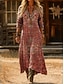 Dame Maxikjole Solkjole Ferie Fritid Bohem Daglig Normal Blomstret Geometrisk Langermet V-hals Rød Lilla Grønn Sommer Vår