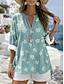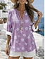 Dame T-skjorte V-hals Ombre Floral Graphic Elegant 3/4 Lengde Ermer Vanlige Topper Daglig Utgang Knapper Gressgrønn Svart og grå Blå Lilla Grønn Sommer Vår Høst