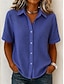 dameskjorte 100 % bomullsskjorte med rynker ensfarget klassisk avslappet kortermet skjortekrage vanlig topper daglig ute helg blå hvit rosa himmelblå sommer vår