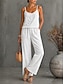 Dame Sommerbukser 100% قطن Bukser Ferie Gatemote Fritid Full lengde Middels midje Helfarge Snorer Lomme Sideknapp Bekvem Pustende Uelastisk Daglig utendørs Gate Blå Aske Svart Hvit Sommer Vår