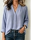Dame Bluse 100% قطن Knapper Helfarge Grunnleggende Fritid 3/4 ermer V-hals Vanlige topper Daglig Svart Hvit Rød Aprikos Sommer Vår Høst