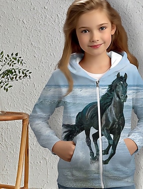 Jente 3D Dyr Geometrisk Hettegenser og sweatshirt Langermet 3D-utskrift Aktiv Mote Grunnleggende Barn 2-13 år Sport & Utendørs