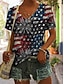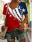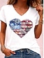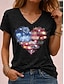 Uavhengighetsdag Amerikansk Jubileum Patriotisk Dame T-skjorte Trykk Grafikk Flagg Vintage Stilfull Klassisk Kortermet V-hals Vanlige topper Daglig Blå Svart Hvit Rosa Grønn Sommer Vår