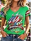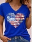 Amerikansk uavhengighetsdag Dame T skjorte Trykt mønster Grafisk Flagg Årgang Stilfull Klassisk Kortermet V-hals Vanlige topper Daglig Blå Rød Grønn Sommer Vår