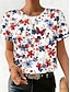 Amerikansk uavhengighetsdag Dame T skjorte Trykt mønster Blomstret Grafisk Flagg Stilfull Klassisk Fritid Kortermet Crew-hals Rund hals Vanlige topper Daglig Blå Rød Sommer Vår