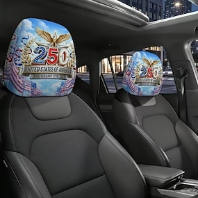 2 stk. nakkestøttetrekk til bil med amerikansk flagg og uavhengighetstrykk, setebeskyttelse med høy elastisitetsdesign og uten fyll, nakkestøttetrekk til bilseter, setepute til bil, patriotisk tema,