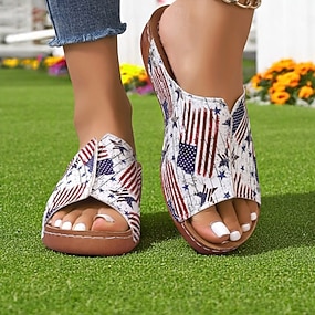 Herresandaler til USA 250-årsjubileum – komfortable patriotiske sko med flaggtrykk for strand, grilling, parader og sommerfeiringer