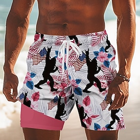 Uavhengighetsdagen Herre 4. juli USAs 250-årsjubileum USAs flagg Patriotisk Fôret shorts 2 i 1 svømmeshorts Badeshorts Medium Midje Ferie Sidelommer Med kompresjonsforing Elastisk snøring i midjen