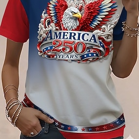 4. juli 2026 250-års minnedag patriotisk patriot 3D print US flagg crew neck kortermet T-skjorte casual daglig street