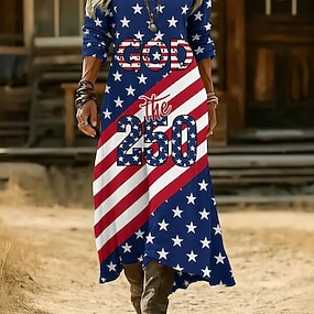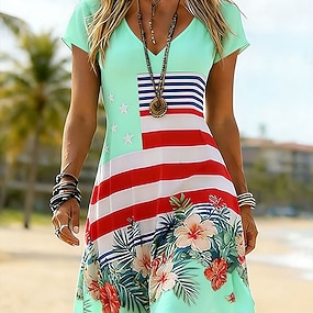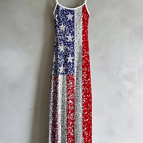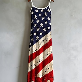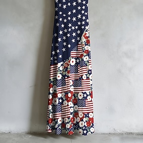 Uavhengighetsdag Dame Knelang kjole Uformell kjole Slipkjole Mote Klassisk Moderne utendørs Feriereise Ut på byen Normal Stjerner og striper Ermeløs V-hals Blå Hvit Burgunder Kakifarget Sommer Vår