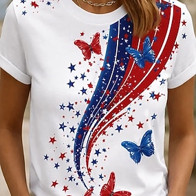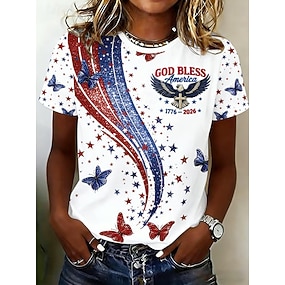 Amerikansk uavhengighetsdag Dame T skjorte Trykt mønster Grafisk Flagg Stilfull Klassisk Fritid Kortermet Crew-hals Vanlige topper Daglig Hvit Sommer Vår