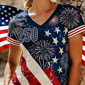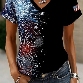 Uavhengighetsdag Amerikansk Jubileum Patriotisk Dame T-skjorte Trykk Grafikk Flagg Stilfull Klassisk Casual Kortermet V-hals Vanlige topper Daglig Svart Hvit Rød Sommer Vår