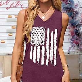 Amerikansk uavhengighetsdag Dame Singleter Trykt mønster Grafisk Flagg Amerikansk flagg Årgang Tropisk Stilfull Ermeløs V-hals Vanlige topper Daglig Blå Hvit Rød Navyblå Sommer Vår