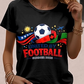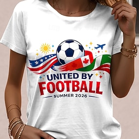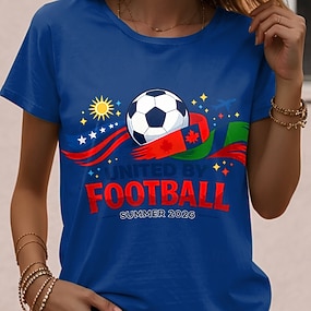 Dame T skjorte Trykt mønster Grafisk Fotballag Stilfull Klassisk Fritid Kortermet Crew-hals Vanlige topper Daglig Gul Rød Grønn Sommer Vår