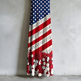 kvinners 250-års uavhengighetsferieskjørt mote avslappet maxiskjørt med høy midje grafisk lommetrykk mikroelastisk daglig ferie blå rød vår 95 % polyester 5 % spandex