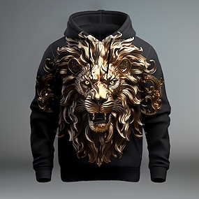 Herre Løve Hattetrøje Hettegensere Genser Daglig Fritid Langermet Med hette Feriereise Sport & Utendørs Gateklær Brun Trykt mønster Lomme foran Vår & Vinter Designer S M L XL XXL XXXL