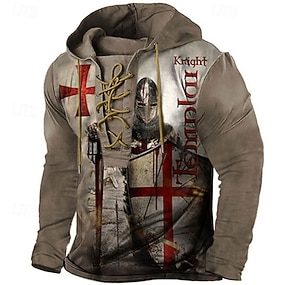 Herre Tempelridderne Grafiske trykk Kors Hattetrøje Hettegensere Genser Gatemote Designer Fritid Stor og høy Langermet Med hette Daglig Sport Kakifarget Trykt mønster Vår & Vinter Designer S M L XL