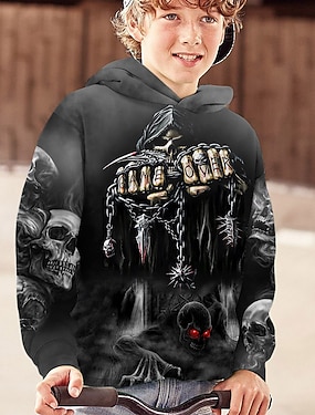 Barn Gutt Halloween Hattetrøje Langermet 3D-utskrift Hodeskaller Lomme Svart Grå Fuksia Barn Topper Høst Aktiv utendørs Halloween Normal 4-12 år