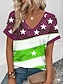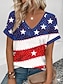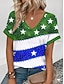 Amerikansk uavhengighetsdag Dame T skjorte T-skjorte Trykt mønster Grafisk Stilfull Klassisk Fritid Kortermet V-hals Vanlige topper Daglig Ut på byen Helg Blå Svart Hvit Rød Grønn Sommer Vår