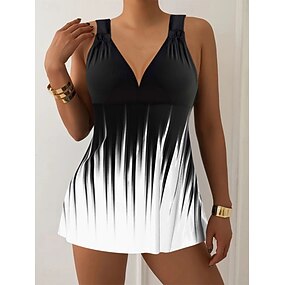 Kvinne Tankini 2-delt badedrakt Shorts Magekontroll Høy midje Slank Ryggløs Ferie Strandklær Ombre Grafisk V-hals Ermeløs badedrakt