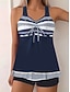 Dame Badetøy Tankini 2 stk Høy Midje Badedrakt Midjekontroll Høy Midje Tynn Åpen rygg Ferie Strand Klær Nyanse Stripe V-hals Ermeløs Badedrakter