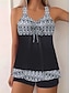 Kvinners badetøy svømmedrakter 2-delt tankini badedrakt uten rygg slank ferie strandtøy blomster grafisk halterneck ermene badedrakter