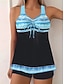 Dame Badetøy Tankini 2 stk Frekk Badedrakt Åpen rygg Ferie Strand Klær Nyanse Grafisk U-hals Ermeløs Badedrakter