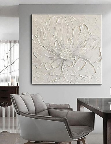 3d stort håndmalt hvit blomst oljemaleri på lerret håndlaget akrylmaling håndlaget tungt teksturert maleri abstrakt landskap oljemaleri veggkunst blomster veggdekor maleri