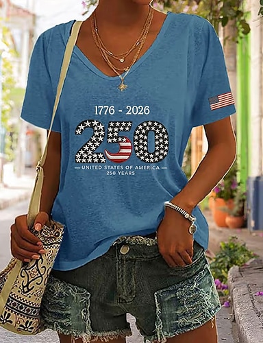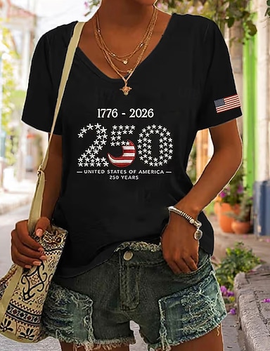 Uavhengighetsdagen Patriotisk Kvinne T-skjorte Grafisk Flagg Vintage Stilig Klassisk Kortermet V-hals Vanlige Topper Daglig Helg Trykk Svart Hvit Rød Blå Sommer