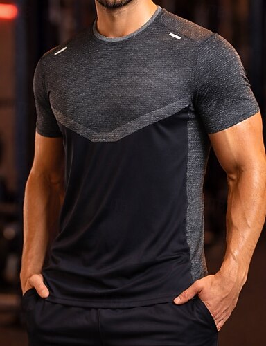 Herre Fargeblokk T-skjorte til jogging Kompresjonsskjorte Atletisk skjorte Sportstopp Sommer Reflekterende Stripe Kortermet Hurtigtørkende Fukttransport Pustende Treningsøkt Vandring Jogge Blå Svart