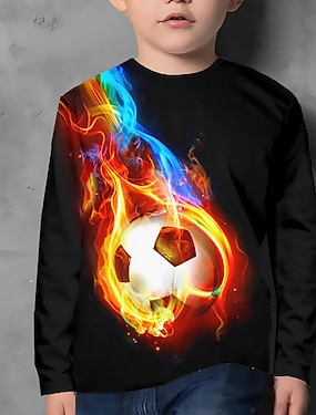 Gutt 3D Fotball Hettegenser og bukse Sett Langermet 3D-utskrift Høst Vinter Aktiv Mote Kul Polyester Barn 3-12 år utendørs Gate Feriereise Normal
