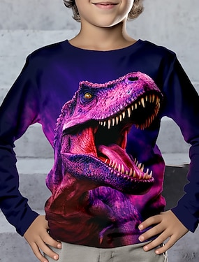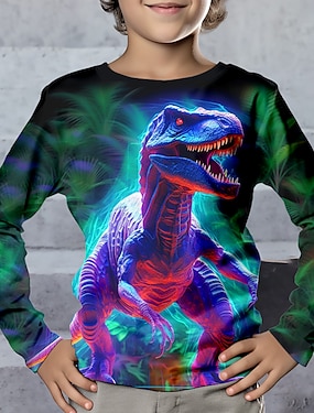 Gutt 3D Dinosaur Hettegenser og bukse Sett Langermet 3D-utskrift Høst Vinter Aktiv Mote Kul Polyester Barn 3-12 år utendørs Gate Feriereise Normal
