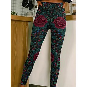 Dame Leggings Koselige leggings Ferie Årgang Fritid Full lengde Høy Midje Grafisk Rose Printer Komfort Bekvem Elastisk Avslappet Daglig Feriereise Svart Rød Grønn Vår Høst Slank Fasong