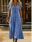 Dame Maxikjole Imitert bomullslin Kjole med A-linje Sommerkjole Fritid Daglig Løstsittende عادي Kortermet V-hals Himmelblå Lys Lilla Grønn Grå Sommer Vår