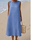 Dame Midikjole Vasket kjole Uformell kjole T skjortekjole Grunnleggende Klassisk Daglig Feriereise Løstsittende عادي Ermeløs Crew-hals Blå Sommer Vår