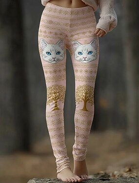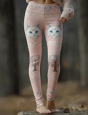 Dame Leggings Koselige leggings Ferie Årgang Etnisk stil Full lengde Høy Midje Grafisk Katt Printer Bekvem Elastisk Avslappet Daglig Feriereise Rosa Mørk Rosa Vår Høst Slank Fasong