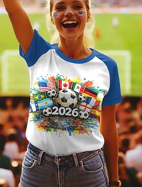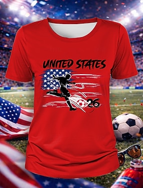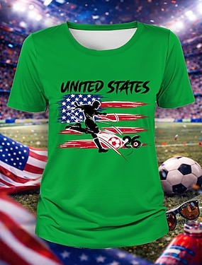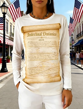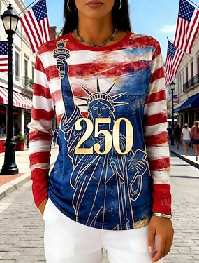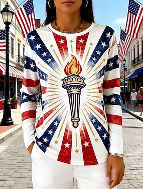 Amerikansk uavhengighetsdag Dame T skjorte T-skjorte Trykt mønster Grafisk Amerikansk flagg Mote Stilfull Klassisk Langermet Crew-hals Vanlige topper Daglig Ut på byen Helg Hvit Vår Høst