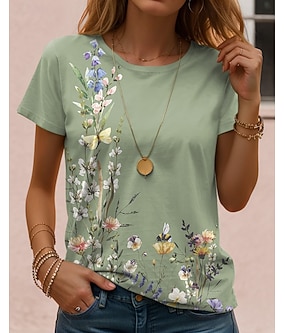 Dame T skjorte Trykt mønster Blomstret Grafisk Planter Årgang Stilfull Klassisk Kortermet Crew-hals Rund hals Vanlige topper Daglig Blå Svart og Rød Lysegrønn Marineblå Lilla Sommer