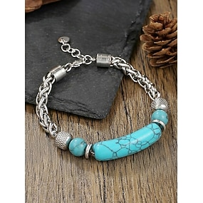 westernarmbånd med perler for menn, sett med turkise steiner, kuhodeskalledesign, boho-stil for fritids- og utendørsklær