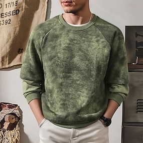 Herre Genser Aprikos Vinrød Svart Militærgrønn Brun Crew-hals Fargeblokk Lapper Sport & Utendørs Avslappet Daglig Gatemote Kul Sportsklær Alle årstider Klær Gensere Gensere Langermet