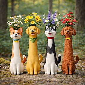 håndlaget særegen hundeformet vase i harpiks til hagedekorasjon, søt hundeplanter til sukkulenter, innendørs utendørs hage terrasse plen balkong hjemdekor