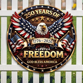 Amerikansk 250-årsjubileums treskilt patriotisk dørhenger, Gud velsigne Amerikas uavhengighetsdagsdekor med ørn, frihetsklokke og Frihetsgudinnen, 1776–2026 4. juli inngangsdørdekorasjon