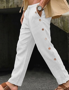 Herre Linbukser Sommerbukser Snorer Elastisk midje Sideknapp عادي Bekvem Pustende Full lengde Avslappet Daglig utendørs Ferie Klassisk Svart Hvit Uelastisk