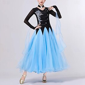 ballroom dansekjole rhinestone dame fest moderne performance klær langermet vals konkurranse sceneklær kostymer