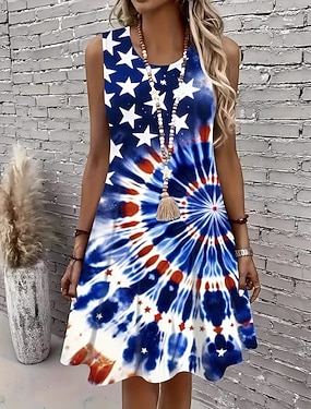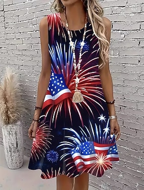 Uavhengighetsdagen Patriotisk Kvinne Kjole Mini Kjole Petite Kjole Sommerkjole Tank Kjole Sommerkjole Uformell Ferie Strand Vanlig Passform Flagg Uten Ermer Crew Neck Hvit
