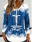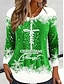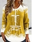 Julekvinnens T-skjorte grafisk vintage mote stilfull langermet crew neck rund hals vanlige topper daglig helg trykk svart gull sommer vår høst vinter
