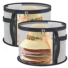 2-pakning hatteesker for kvinner – store, gjennomsiktige hatteesker for solhatter med bred brem, cowboyhatter &reise – sammenleggbar hatteorganiseringsveske med håndtak
