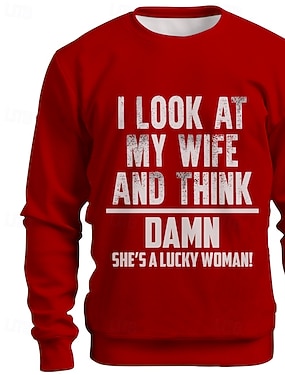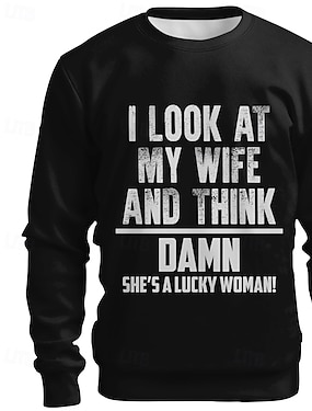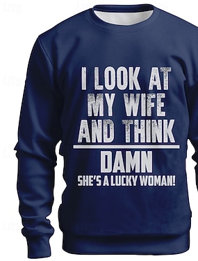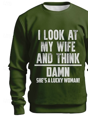 Menns morsomme grafiske T-skjorte - 'Jeg ser på kona mi og tenker damn hun er en heldig kvinne!' sarkastisk forhold ektefelle T-skjorte